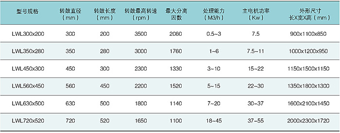 • 卸料沉降臥螺離心機的產品主要型號及技術參數